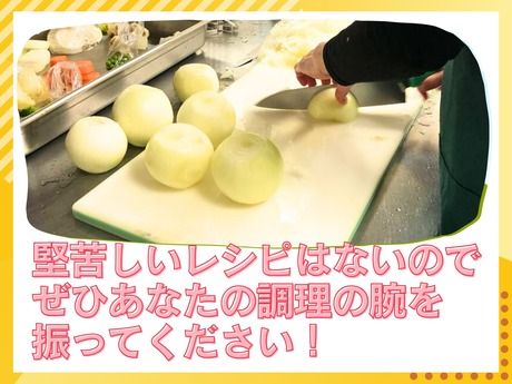 仕事内容 / 飲食業界からの転職者も 多数活躍中です!(ゝω・)9★ \ ┏───────────────┓ ■1回あたり100~300食ほど! ■ギスギスなし◎みんな和やか! ■調理のスキルアップも目指せる! ■残業ほぼなし・シフトの融通◎ ……………………………………… お電話での応募・お問合せもOK! 【本社】TEL:06-4302-3971 ┗───────────────┛ \\ // // 調理師免許があれば ブランク・未経験OK! // // \\ 【仕事内容】 笹生病院にて利用者様に ご提供するお食事の 調理全般をお任せします! 朝・夕食は100食、 昼食は300食ほどのご提供です! ◆働きやすさも自慢です  ̄ ̄ ̄ ̄ ̄ ̄ ̄ ̄ ̄ ̄ ̄ ̄ ̄ ̄ ̄ ・残業ほぼなし ・清潔で快適な厨房 ・希望休の相談もしやすい環境 ・スタッフ同士の連携◎で雰囲気も良好 経験よりも“人柄重視”の採用です! 腰を据えて働きたい方大歓迎! 長期的に安定して働ける環境を整えています。 ◆手作りにこだわった調理  ̄ ̄ ̄ ̄ ̄ ̄ ̄ ̄ ̄ ̄ ̄ ̄ ̄ ̄ ̄ 当社は"大手"ではありません。 だからこそ1食1食の 「質」を大事にしています◎ 業務量のバランスを加味して 既製品を使うこともありますが 基本は手作りにこだわりご提供! 堅苦しいレシピはないので ぜひあなたの腕を振るって 自由な調理をお願いします! 「作る楽しさ」を感じられる職場ですよ♪ ◆スキルアップも可能!  ̄ ̄ ̄ ̄ ̄ ̄ ̄ ̄ ̄ ̄ ̄ ̄ ̄ ̄ ̄ Aさんには"細かく刻んで"など Bさんには"ペースト状で"など 健康状態に合わせた形状でご提供。 福祉給食ならではの 様々な調理方法があるので スキルアップも目指せますよ◎ / 働くスタッフの声/調理師 (前職:飲食店/他の給食会社) 食べやすさや美味しさなど、 日々、創意工夫のしがいがあり、 [健康と暮らしを支えている実感]を を十二分に感じることができます! 職員の方もとてもやさしく、 「今日の○○美味しかったわ!」 声をかけてくださるのが 嬉しいですね♪ \ -:+:-:+:-:+:-:+:-:+:-:+:-:+:-+:- ◆ (。・ω・)σ【SNS更新中!】 ◆ アカウント [@japanmedicalfood]で検索! お料理も載せてます。 「美味しい」と口コミで大好評! -:+:-:+:-:+:-:+:-:+:-:+:-:+:-+:-
