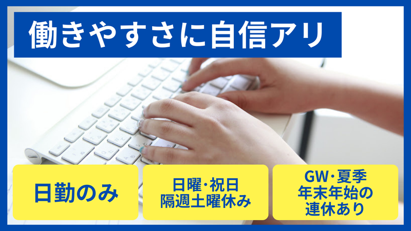 日勤のみ/日・祝休/隔週土曜休み/連休有/未経験歓迎