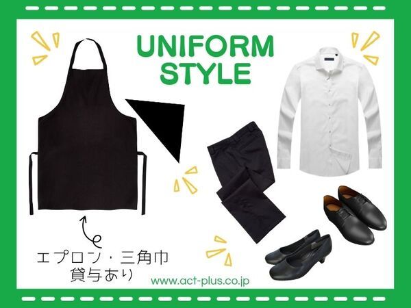 【保険制度】 雇用保険、労災保険 待遇 制服一部貸与 ※白シャツ・黒パンツ・黒靴は私物※