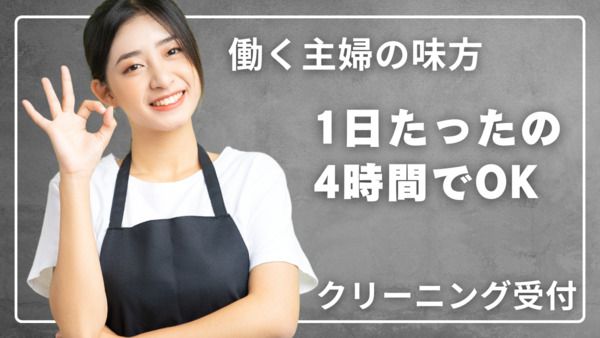 仕事内容 :✿:✽・✽:✿:✽・✽:✿:✽・✽:✿:✽・✽:✿: 電話でのご応募はコチラ↓↓ 連絡先:06-6838-8807(採用総合窓口) ご質問等もお気軽にお問い合わせください! :✿:✽・✽:✿:✽・✽:✿:✽・✽:✿:✽・✽:✿: クリーニング品の受付、お渡し、仕上がり品の整理、レジ 業務、等を行っていただきます。 入社後、レジの操作から覚えていただきます。その他、衣類の注意点などの研修の後、お客様の対応となります。 みなさん未経験からはじめられているのでご安心ください。 一般クリーニング業、店舗開発及びフォローDPE、Yシャツ販売を行う企業です。 ※本求人は、「職業紹介」となります。「職業紹介」とは、紹介先企業と応募者の両者合意の上、直接雇用を前提としたご紹介方法となります。 \★ ここがおすすめ ★/ これまでお仕事の経験が少ない方でも、笑顔で挨拶できる方であれば大歓迎! 1日5.5hの勤務で、家事との両立にも支障なく働ける環境です! PC・スマホ等でオンライン登録も可能です。お気軽にご相談ください。 *この案件は株式会社ビジネスサポートヤマトによる人材紹介案件です。