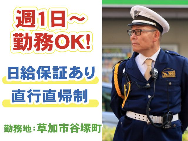 仕事内容 即日勤務OK!勤務終了後に現金での日払いOK! 70歳以上のシニア世代も活躍中! <注目ポイント> 〇週1日~勤務OK 〇平日のみもOK 〇シフト自由自在 〇給与保証有(現場による) 〇寮完備(即入寮OK) 〇定年退職者も活躍中 未経験者歓迎!中高年アルバイトさんも活躍中 【仕事内容について】 草加市谷塚町にある温浴施設での 駐車場の誘導警備です。 来館された方が安全に施設を利用できるよう 車両や歩行者の方の誘導などをお願いします。 <当社で働くメリット!> 〇早く終わっても日給保証もあり 〇単発バイト・スポットワークもOK 〇即入寮OKの寮完備 〇日払い・週払い制度あり 〇正社員登用実績あり 〇冬は暖かい電熱入りヒーターベスト、夏は涼しい空調服全支給 【勤務について】 日勤のみ、週1日~OK 平日だけ・土曜のみなどシフト自由自在! 自宅から現場へ直行直帰OK! ちょっとしたお小遣い稼ぎや 単発バイト・Wワーク・副業にもピッタリ! もちろん週5日のフルタイムもOK! <こんな方にオススメ> 〇施設警備アルバイト・パート経験者 〇60歳・70歳以上のシニアアルバイトさん 〇定年退職後も働きたい 〇スポットワークで働きたい 〇ブランクがある 警備未経験者も大歓迎! 事前に法定研修を行うのでご安心ください。 日払い・週払いのほかに、前払い・仮払いも相談可能です 詳細についてはお気軽にご相談ください! 【当社について】 https://www.o-g-s.jp/ さいたま市南区で中浦和駅から徒歩1分の場所に事務所を構える警備会社です 現在、埼玉県全域及び東京都北部地区に業務提供中となっております 平成元年の創業から38年。 創業当時から長く働いているスタッフも多数活躍しており、 警備の現場で皆様の安心・安全を守り続けています。 その他、さまざまな採用情報を提供しております https://entori.jp/o-g-s/ よりご確認ください お問い合わせは随時、お気軽にご連絡下さい こちらの掲載終了後も、応募受付可能です TEL:048-866-3711 /採用係