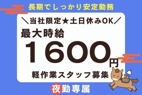 \ついにスタート!/人気の夜勤ワーク≪長期スタッフ大量募集≫★最大時給1600円でガッツリ稼げる&空調完備で快適♪