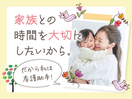 仕事内容 \未経験&無資格OK!/お仕事経験がない方でもご安心を◎専門知識のいらないサポート業務のみお任せ! ◎子供が幼稚園に入園、ちょっと自分の時間ができたけどどうしようかな… ◎保育園に入園させて家計のためにもお仕事始めたいな… ◎今後も役立つ職場で働きたいな… ◎近所だとママ友に会っちゃうからちょっと家から出たところで働きたい… そんな方にオススメなのが「 看護助手 」!! 飲食やサービス業とは違い景気に左右されずシフトカットの心配なし! 今後も役立つスキルや資格も働きながら手に入れられる! < なのに > 無資格&未経験でも働けちゃうんです(^_-)-☆ ~仕事内容~ *食事の配膳・下膳・配茶 *物品補充 *環境整備 *病棟清掃(シーツ交換含む) *オムツ介助・トイレ洗浄など 入社後は先輩スタッフがついて 丁寧にお仕事を教えていきます。 分からないことはその場で 質問いただいて大丈夫です◎ 【1日のスケジュール(例)】 <09:00~>出勤、お仕事開始! オムツ交換やトイレの介助 <10:00~>患者様を検査室へ誘導 シーツやリネン類の交換・補充 <12:00~>患者様に昼飯やお茶を配る <~13:00>お仕事終了!残業せず退勤♪ \働くスタッフさんをご紹介♪/ <20代ママ/子供1人(年少)> 出産後、初めてのお仕事だったので 短時間で子供が幼稚園に行っている間で 働ける仕事を探していました。 病院のお仕事は初めてで不安だったけど シーツ交換や食事の準備など 家事の要領でできることが多く、 先輩スタッフや看護師さんが優しく お仕事を教えてくれたのでスグに覚えられました♪ <30代ママ/子供2人(年少・年長)> 子育てはいろいろと大変なので… 気分転換に午前中だけ働いてます。 残業はまったくないので 子供が幼稚園から帰るまでには帰宅! 患者様とのおしゃべりが楽しいし 「ありがとう」と言われると嬉しい♪ その分、子供が帰宅してからは いつもより優しくできてる気がします(笑) 【勤務開始日の相談OK】 お1人につき1名のサポートスタッフがつき お仕事探しから働き始めた後までフォローします◎ 毎月面談している方もいらっしゃいますよ♪ 「スグ働きたい」「来月から」 など、勤務開始日はあなたのタイミングでOK◎ 在職中の方もぜひご応募ください! 現地面接・オンライン面接OK◎ <TM_N>