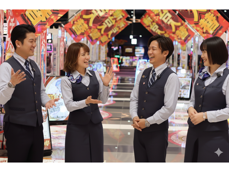 応募資格 ・受動喫煙対策:あり(屋内原則禁煙/喫煙室あり/店内は一部電子タバコ喫煙可能エリアあり) ※受動喫煙防止のため、20歳未満の方の応募はご遠慮ください。 パチンコ店での接客経験のある方大歓迎! もちろん、「はじめて」の方には丁寧に研修するので安心してくださいね! ≫学生 ・夕方から勤務したい ・学校がない日に働きたい ≫フリーター ・安定した収入がほしい… ・ゆくゆくは正社員を目指したい ≫主婦(夫)さん ・子育てや家庭と両立しながら働きたい ・シフトの融通が利くバイトが良い 皆さん、お待ちしています! ※髪型・髪色・ネイル原則自由 未経験者歓迎/経験者優遇/フリーター歓迎/大学生歓迎/二部学生歓迎/主婦(夫)歓迎/学歴不問/髪型自由/履歴書不要