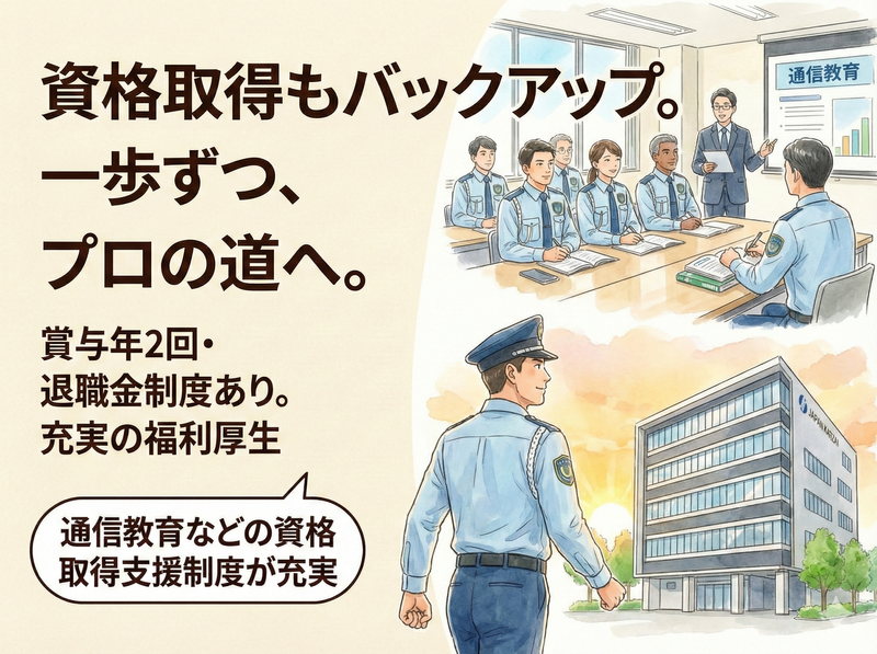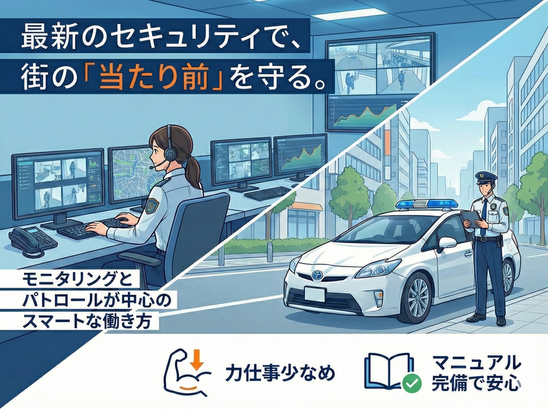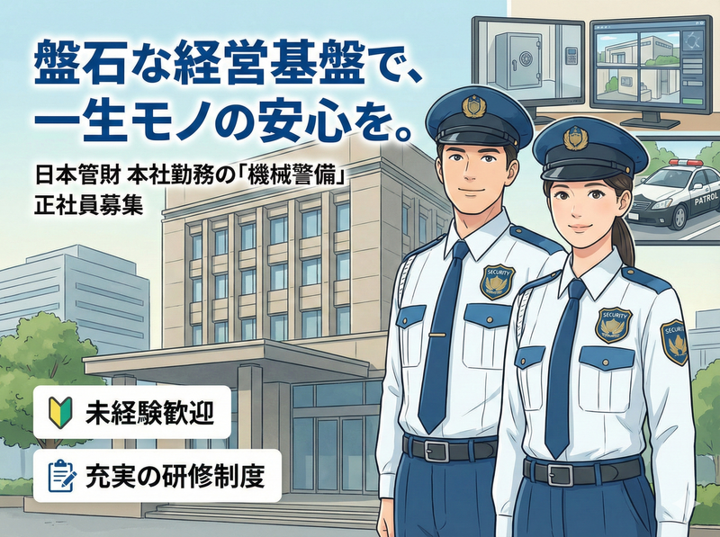 仕事内容 【この募集のポイント】 盤石な経営基盤のもとで、心機一転、新しいキャリアを築きませんか? 日本管財では現在、新しく「警備職」のメンバーを募集中です。 経験や資格の有無は一切問いません。あなたの「やってみたい」という気持ちを全力でバックアップします。 少しでも興味をお持ちいただけたなら、ぜひお気軽にご連絡ください! 【こんな方にオススメ】 ・一つひとつの業務に責任を持って向き合える方 ・仕事を通じて地域社会の役に立ちたいと考えている方 ・警備の仕事に興味があり、ゼロから挑戦してみたい方 選考では、これまでの経験よりもあなた自身の「お人柄」を大切にしています。 腰を据えて働ける安定した環境で、新しい一歩を踏み出してみませんか? 【仕事内容】 特別なスキルや経験は一切問いません。新しいキャリアを「機械警備」からスタートしてみませんか? 管理センターから施設内のセキュリティ機器をモニタリングするほか、社用車でのパトロールをお任せします。 万が一、センサーが異常を検知(発報)した際には、速やかに現場へ駆けつけ、状況確認や適切な対処を行っていただきます。 入社後には、法律で定められた「新任研修」をしっかり行います。 警備の基礎知識から現場での動き方まで、一つひとつ丁寧にお教えしますので、業界未経験の方も自信を持って実務に臨める環境です。