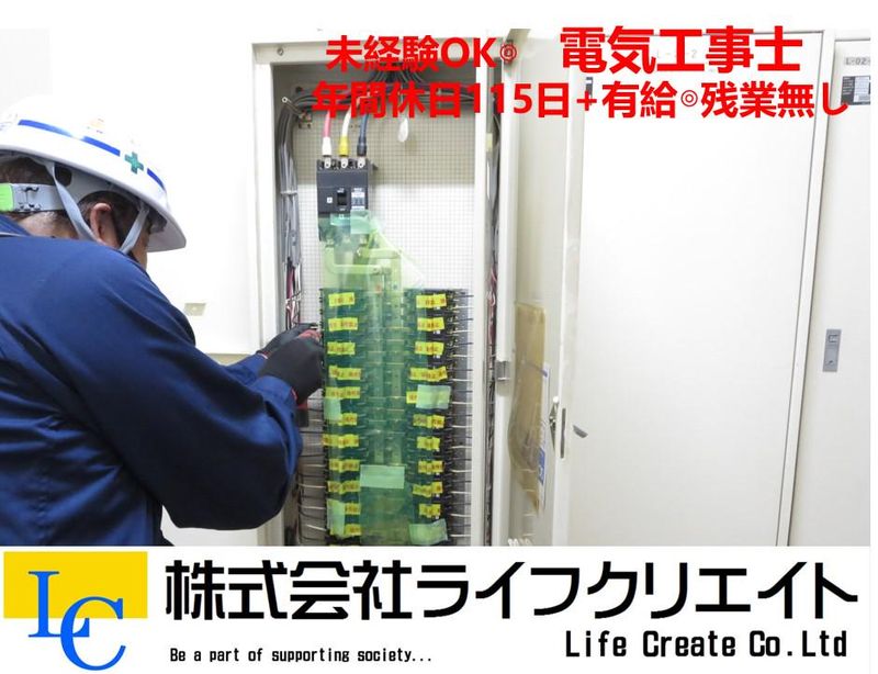 安定企業★残業無★平均有給10日消化♪未経験から電気技術者へ