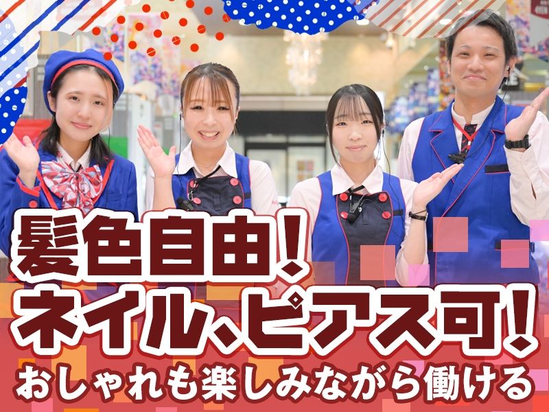 経験・資格 ※20歳以上(例外事由2号) 喫煙エリアへの立ち入りを伴う業務のため、法令により20歳以上の方を対象としています。 \特別な資格・経験は一切不要!/ 幅広い世代・経験の方が活躍中の職場です♪ 「パチンコ屋さんに入ったこともないよ・・・」という方も多く現在ご活躍頂いております! 力仕事はありませんので、ミドル世代以上の主婦(主夫)さんも活躍中! ☆ネイルOK・ピアスOK・髪色自由! オシャレを楽しみながら働けます♪ 始めは明るく挨拶できるレベルで構いませんのでご安心ください♪