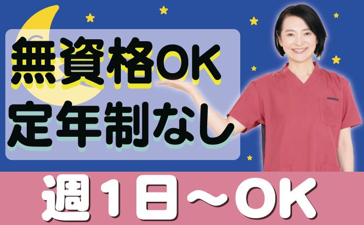 資格・経験 無資格・未経験可 ※無資格の方は入職後、認知症介護基礎研修の受講が必須になります ※夜勤未経験の方は約1ヵ月間日勤でのトレーニングを行います。(経験・能力により判断) ※18歳以上(深夜勤務があるため)