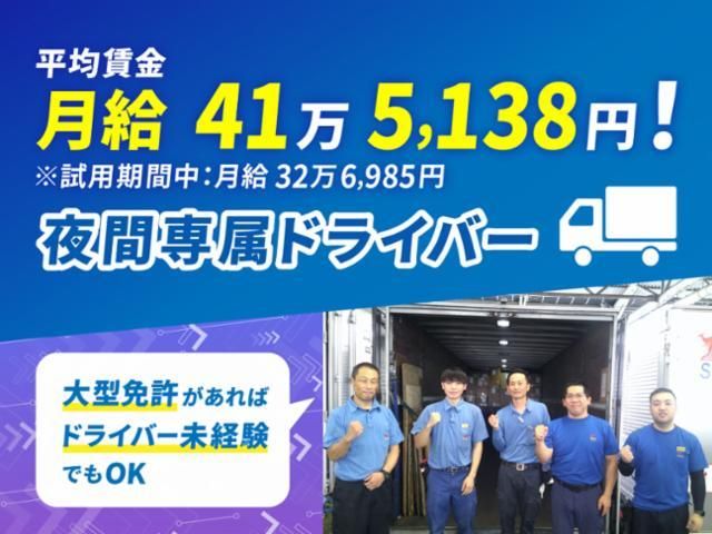 仕事情報 ● 仕事内容 【この仕事の魅力まとめ】 ・月給35万~50万円スタート!平均月収41万円以上 ・夜勤専属だから生活リズムが安定します ・荷主対応なし → 運転と作業に集中できる環境です ・各拠点に仮眠室・シャワー完備 → 無理なく働けます ・安定企業グループだから将来も安心です 具体的な仕事内容 ・大型トラックで九州~関西エリアの拠点間配送を担当 ・運行は夜勤専属シフト(17:00~翌2:00/実働8h+休憩1h) ・基本は決まったルート配送、一部長距離運行あり ・荷積み、荷下ろしはリフト中心、一部手作業ありですがコツを先輩が伝授します 研修制度 ・入社後は横乗り研修からスタート(約3ヶ月間) ・Zoom研修や宿泊研修など教育体制あり ・荷物の持ち方や作業手順も丁寧に指導 ・年末等の繁忙期に急な独り立ちはなく、段階的にスキル習得可能 給与・収入例 ・月給35万~50万円スタート ・研修中でも各種手当込みで月収32万円前後可能 ・平均月収41万円以上。先輩社員には50万円超えも!