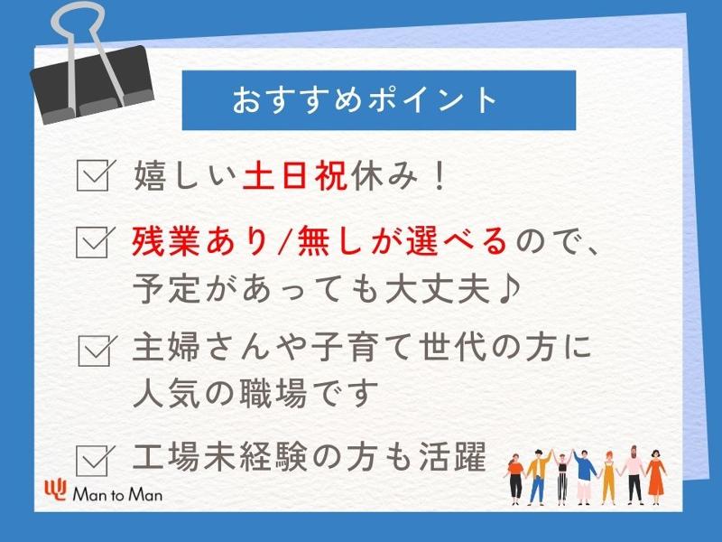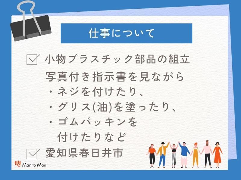 アピールポイント: 軽量プラスチック部品の組立【子育て世代の活躍中!】