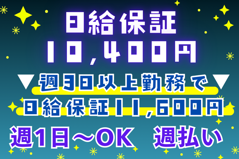 仕事内容 *期間限定4月のみ* 4/10(金)~4/26(日)に行われる、足立区の都立公園で行われるライトアップイベントが開催! お花畑の咲き誇る期間中で、短期のお仕事です。 午後から夜までの、ライトアップ時間帯で、臨時の駐車場での誘導・案内が業務のメインになります。 車を空いているスペースへ誘導したり、事故のないように歩行者をご案内します。 期間中は毎日稼働しているので、勤務日程はおもいのまま! 週1日からでもエントリーOKです! ライフスタイルに合わせてお仕事ができます! ✅選べるシフトで働きやすい♪ ✅週1日~OK!扶養内可能◎ ✅勤務時間は、12:30~21:30 ✅週払いOK!急な出費も安心 ✅交通費の支給あり <お仕事詳細> ★4/10(金)~4/26(日)までのお仕事です ・場内駐車スペースの案内・誘導 ・車両入口及び近隣道路での歩行者・車両誘導 ・入退場する車両の誘導 ・駐車場内の保安・巡回 などなど 現場では担当リーダーや先輩がしっかりフォローします! *詳細は面談の時にお伝えします。 *期間限定のお仕事です。 ✨週1日~シフト相談可能◎ 「スグ働きたい」など勤務期間も相談OK。 期間限定の短期勤務も可能です。 長期勤務できる方も大歓迎! ✨研修アリで、未経験者でもOK! 仕事内容を覚えたら安心! 都内・千葉県内のベイエリアに他勤務地あります! 慣れたお仕事を続けられます。 ✅20代から60代まで、幅広い年齢層のスタッフが活躍中! ✅未経験スタートの先輩スタッフ多数活躍中! ✅手当アリの研修で基本から教えますので安心して始めていただけます。 警備スタッフ、誘導スタッフ、イベントセキュリティスタッフ、保安スタッフなどのご経験も活かせます! 資格取得支援制度アリでスキルアップも可能! 日払い・週払いOKで急な出費にも対応できます(各規定有) ★中高年スタッフ活躍中!年齢不問! ★日払い・週払いOK(規定有) ★交通費全額支給 ★さらに当業務終了後にも長期間勤務いただいた方には 「ビッグボーナス5万円」支給!! ガンバるあなたを応援します! *警備業のため事前に必ず初任研修を受講していただきます。 (研修中も3日間(合計20時間)で3万2400円の手当支給があります) 少しでも興味を持ったらまずはキープ! 皆さんのエントリー、お待ちしております! 事業内容 警備業・請負業