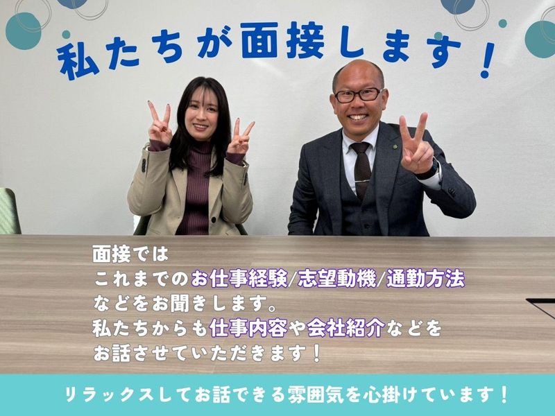 求めている人材 【必須】 *PCの基本操作ができる方 ┗Microsoftを使った業務経験がある方 (簡易な表やグラフ作成、関数の設定ができるレベル) *オフィスワーク業務・経験がある方 【歓迎】 *異業種からの転職歓迎 *ブランクOK *社内とのコミュニケーションが取れる方 *データの照らし合わせなど細かい作業が得意な方 *マルチタスク業務経験者の方 *フットワーク軽く対応いただける方 2~3人体制でサポートしますので 分からないことがあれば何でも相談して下さいね!