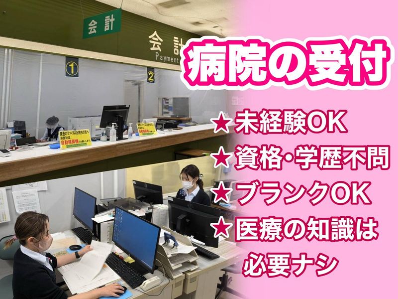 仕事内容 取手市にある病院内にて、 ”受付”スタッフを募集!! <具体的には・・・> ●病院の外来受付前で患者様やそのご家族・ご友人などへの案内等です。 ●受付業務に関わるPC作業 ●予約受付の電話対応 ●会計入力 などをお任せします。 経験を問わず、知識も不要ですので安心です♪ 医療関係の知識は無くて大丈夫です◎ 病院内のスタッフは穏やかな人が多いので、分からない事もスグに聞ける安心の環境です◎