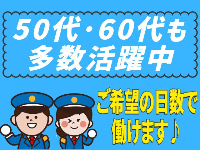 仕事内容 「働き方が選べる!勤務日数相談OK」 ・土曜日(日曜日)だけ ・平日のみ ・土日のみ ・短時間勤務(午前のみ・午後のみ) など、ご希望に合わせて決められます! Wワーク(副業)希望の方もOK! \大手企業で安心雇用!/ 未経験OK!警備員アルバイト募集! 警備業が初めての方も多数活躍しています。 50代以上の中高年・シニア世代も在籍中! 「警備員のお仕事内容」 地域の皆様の安全を守る警備業務! ・交通誘導警備 道路や工事現場で工事車両や一般車の誘導、歩行者の安全確保を行います。 ・イベント・雑踏警備 お祭りやライブなどが開催される際、来場者の誘導や案内業務を行います。 ・駐車場警備 商業施設などで車両を誘導したり、歩行者の安全確保を行います。 様々な警備業務がありますが、しっかり研修を行ってから現場でお仕事デビューとなります。 警備経験がなくても大丈夫です。 「日勤・夜勤選択可能!」 日中と夜間のお仕事があります。 日勤専属、深夜専属などもお気軽にご相談ください! 「勤務日数の相談OK!」 現在主婦(夫)パートとして働いている方、扶養内勤務も可能です! 時間・日数ご相談ください! 「幅広い世代活躍中」 若い方からミドル(中高年)・シニアの方まで幅広い年代が活躍できる警備員のお仕事! アルバイト警備員スタッフ大募集中! 50代以上の中高年・シニアの方も多数活躍しています! 「警備経験も活かせます!」 ・施設警備 ・常駐警備 ・駐車場警備 ・交通誘導警備 など警備経験がある方や資格がある方は即戦力として働けます! 「働きながらスキルアップができる!」 資格取得費用負担制度を設けており、入社後に警備資格を取ることもできます。 資格を取れば業務の幅も広がり、正社員へのステップアップも可能となります。 実際に正社員登用制度でアルバイトから正社員になったスタッフもおります。 転勤もないので、地元で長期的にご活躍いただけます。 幅広い年代が活躍できる警備のお仕事です。 お問合せだけでもOK! 警備に興味がある方はぜひご応募ください!