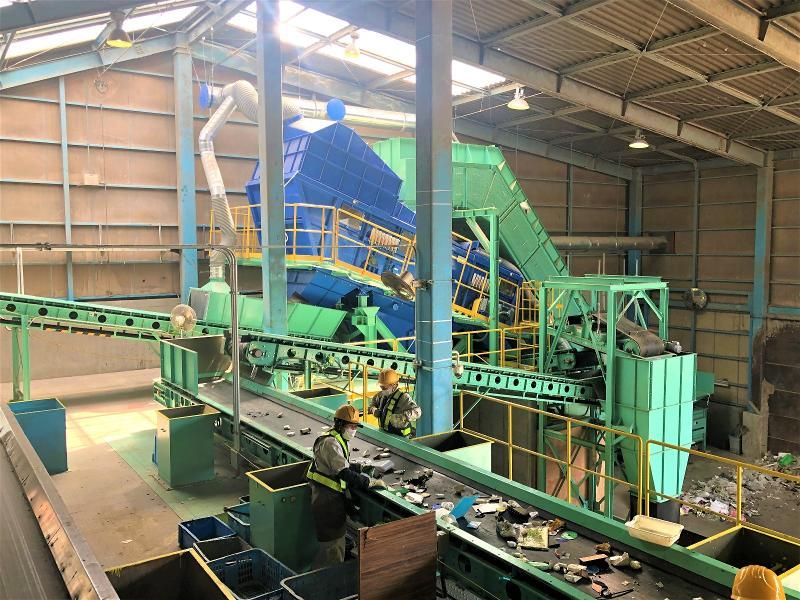 リサイクル工場内の仕分けスタッフ