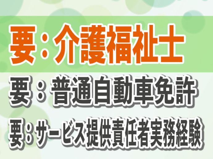 応募条件 年齢:18歳以上(夜勤務ありの為) 経験:ヘルパーステーションでのサービス提供責任者の実務実験(必須) PCスキル:不問 資格:介護福祉士・普通自動車運転免許(どちらも必須) 学歴 不問