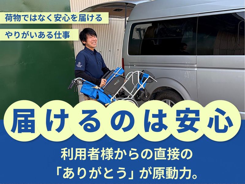 仕事内容 「お節介なくらい、助け合う職場です。」 東大阪営業所の特徴は、困っている仲間を自然にフォローする文化。 誰かの配送が遅れている時は、言葉を交わさなくても仲間が自然とリカバーに向かいます。 そんな「お節介」が当たり前の環境だからこそ、定着率は99%。 配送の仕事にありがちな「一人で抱え込む働き方」ではなく、チームで支え合いながら働ける環境です。 今回の募集は、新拠点を見据えた増員募集。 余裕のある教育体制のもと、新たな一歩を踏み出しませんか。 ✅再配達なしのルート配送 ――――――――――――――――― 電動ベッド、車いす、手すり、杖、歩行器などの福祉用具を、ご利用者様宅や介護施設へ配送します。 配送先は個人宅が約7割、介護事業所が約3割。 事前にスケジュールが決まっている訪問配送なので、再配達は基本ありません。 訪問件数は1日7〜10件程度と無理のない設定。 決められたエリアを回るルート配送なので、慣れてくれば効率よく回れるようになります。 時間に追われ続ける働き方ではなく、余裕を持って仕事ができる環境です。 ✅18時台には退社できる働き方 ――――――――――――――――― 長距離配送や深夜配送などはなく、生活リズムが整った働き方ができるのも特徴です。 多くの社員が18時台には退社しており、仕事終わりの時間もしっかり確保できます。 プライベートで予定がある日は、もちろん定時退社可能です! ✅利用者様から直接感謝される喜び ――――――――――――――――― 配送だけではなく、ベッドや手すりなどの設置や組立も行います。 作業は慣れれば10分程度で完了するものがほとんど。 設置後には利用者様の身体状況に合わせて高さや位置を調整し、安全に使えるよう説明します。 「助かったよ」「ありがとう」と直接声をいただくことも多く、人の役に立つ実感を得られます。 ✅未経験からでも安心の教育体制 ――――――――――――――――― 入社後3ヶ月間は先輩社員に同行しながら仕事を覚えていきます。 配送ルート、福祉用具の組立方法、利用者様への説明方法などを基本から丁寧に指導。 マンツーマンなのでわからないことはすぐに相談でき、未経験でも少しずつ業務の幅を広げていくことができます。 実際に、38歳で郵便局員から転職した先輩は、最初こそ車の運転に不安を感じていましたが、今やエースとして活躍中です。 他にも、コンビニ、飲食店、美容師など様々な前職の先輩が活躍しています。 ✅将来のキャリアも広がる仕事 ――――――――――――――――― まずは配送業務を中心に経験を積みますが、希望や適性に応じて営業職などへキャリアアップすることも可能です。 資格取得支援制度もあり、福祉用具専門相談員などの資格取得も目指せます。 成長を実感しながら長く働ける環境です。