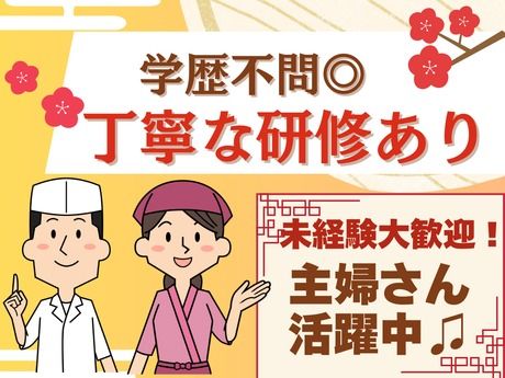 仕事内容 まずはかんたん作業から♪パート復帰の方も応援! 接客や難しい調理作業は一切ナシ! お客様と話すのが苦手な方や、 人と接するのが心配な方でも安心です♪ おにぎり作りや、洗い物など まずは簡単な事から教えます! おにぎりも型があるので 握ったことがなくても大丈夫! 洗い物も洗浄機があるのでラクラク~! 1日でできるようになりますよ♪ 「これ手伝うよ~」 「大丈夫?何か困ってる?」など、 周りのサポートもある職場環境♪ すぐに馴染める和やかな雰囲気が自慢です。 週0日~OK!あなたのペースで働ける◎ シフトは1週間ごとに提出だから、 直前まで予定を調整できて とっても働きやすいと評判です◎ 「平日のみ」「今週は0日」 「来週だけ多めに」の週があってもOK! 「子供の行事でお休み」 「長期休暇中はシフト少なめで」 「他の仕事が忙しい時は減らして」など、 あなたの都合を最優先できます! \美味しい♪人気メニューのまかないあり/ 「ご飯を1人分だけ作るのはちょっとな…」 「一人暮らしだし簡単に食べれればいいや」 という働くスタッフからも大好評! 自分のペースで働きつつ食費の節約にも◎ 「私に調理なんてできるかな…」「メンバーと仲良くできるかな…」そんな心配は一切いりません! 現在は学生さん、主婦(夫)さん、 フリーターさんが幅広く活躍中! 朝~ランチ帯は主婦(夫)の方、 ディナー帯や土日は学生が中心、 スキマ時間に働くフリーターの方など、 様々な方が予定と両立して働いています。 年齢に関係なくみんな仲がいいので、 新人さんもすぐに馴染めますよ! 明治10年の創業より、食にこだわり成長してきた歌行燈。現在は国内外に多数店舗を展開しています。 うどん屋からスタートした当社は、 食を通してお客様にご満足いただける 時間や空間を提供。 技術力向上や職場環境改善にも取り組み、 スタッフも満足できる店舗を目指します。