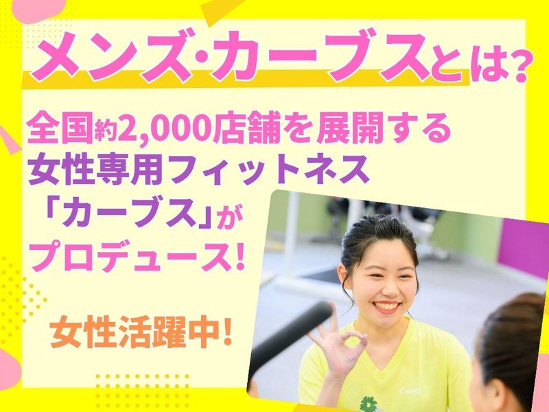仕事内容 【今夏NEWOPEN⭐新店舗スタッフ募集】 \お子さまの新生活と一緒にお仕事復帰/ ✅オープニングメンバー募集♪ ✅お子さまが小学校に上がった タイミングでお仕事復帰にピッタリ◎ ✅全国2000店舗以上展開の女性専用 フィットネス「Curves」の男性版! ✅20~30代を中心に女性スタッフ活躍♪ 未経験・運動経験なしOK! ✅元気な挨拶から!丁寧な研修あり♪ ✅美容・健康の知識が身につく◎ ✅施設内マシン利用無料! 働きながらキレイ&健康に♪ ✅日祝定休日&賞与・昇給あり! 家庭との両立も安心◎ ・・・―――――――――――――――― ⏩メンズカーブスとは?⏪ 全国2000店舗以上を展開する女性専用 フィットネス「カーブス」の男性版! 短時間・効率的な運動で健康生活を サポートする新業態です。 「地域密着の健康インフラ」として、 どなたでも気軽に・楽しく運動できる 場所を提供していきます!! ▼ 主な業務内容 ▼ 通うのが楽しくなるお店づくり♪ ✅運動サポート ↪ マシン利用の案内やストレッチ補助 ✅接客業務 ↪ 明るい挨拶と楽しい会話から◎ ✅健康カウンセリング ✅広報活動、健康イベントの運営 ✅店舗運営(受付、シフト管理、清掃) 【 充実の研修制度 】 運動生理学、マシンの使い方、 接客講義など、同期とイチから 学べる環境が整っています。 手厚い研修制度があるので安心✨ ★ こんな方にオススメ ★ ①人と話すことが好きな方 ②子育てがひと段落し、 お仕事復帰を考えている方 ③家庭と両立し無理なく働きたい方 ④誰かの役に立つ仕事がしたい方 ⑤健康や美容に興味がある方 一緒に新店舗を盛り上げませんか? \ご応募をお待ちしています/