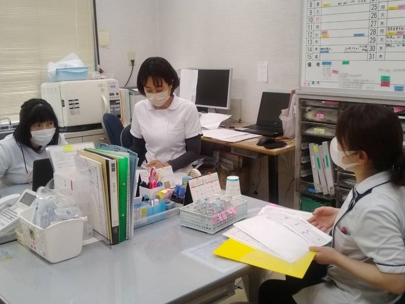職場環境 特養フローラルの「医務部」は看護師3名在籍中! 少ない人数ですので、お互いに協力しながら1日の業務を進めています!