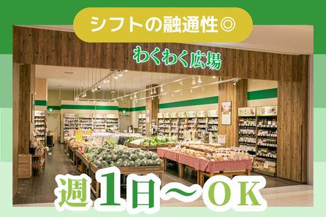 仕事内容 仕事内容 新鮮な野菜や果物、 手作り弁当やお菓子などを取扱う 食のセレクトショップ「わくわく広場」で 販売業務全般をお願いします。 <具体的には> ・レジ ・接客 ・品出し ・店内清掃 など 入社後、イチから丁寧に教えるので 未経験の方でも初めてのアルバイト・パート という方でも安心◎ 今回はオープニングの募集なので、みんな同じスタートです! 一緒にイチからお店をつくりましょう! 「わくわく広場」をご紹介! <いま話題の産直型のスーパー> ◆当日採ったばかりの新鮮野菜 ◆なかなか手に入らない希少フルーツ ◆有名な飲食店のお弁当や手作りパン ◆全国から集めたご当地調味料 などを扱うグルメ特化型店舗! 全国に160店舗に展開しているお店です♪ 柔軟な働き方を応援します! <ご希望のシフトを考慮します!> ☆:時間・曜日・日数など融通バッチリ♪ ☆:「学校」・「かけもち」・「両立」 あなたのライフステージに合う働き方を実現 ☆:もちろんフルタイム勤務も大歓迎です! まずは面接の際にお気軽にご相談ください◎ もちろん勤務開始後の変更もご相談いただけます! 充実待遇が盛りだくさん♪ <従業員割引制度> 全国の”わくわく広場”で使える 従業員割引(10%OFF)あり! <入学祝い金制度(規定)> お子様の小・中・高へご入学時に 2000~3000円の図書カードをプレゼント♪ <独自のライフサポート制度> ご結婚・出産・傷病などに対し、 勤続年数に応じた金一封が支給されます。