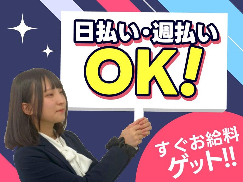 求めている人材 【経験・必要資格】 ★特に必要ありません!未経験大歓迎です!★ 【待遇・福利厚生】 ★日払い・週払い可能(社内規定あり) ★各種保険完備(社会保険、雇用保険) ★有給休暇制度あり ★昇給実績あり ★交通費支給あり(社内規定あり)