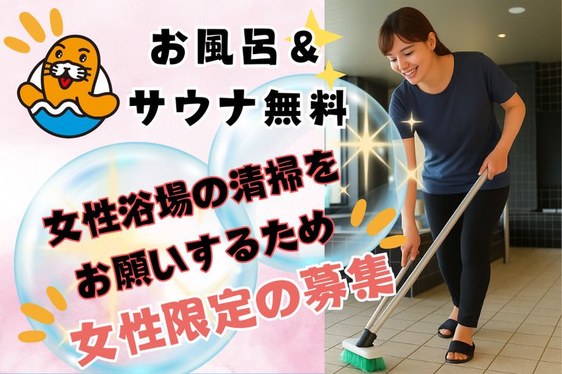【雇用形態】 アルバイト・パート 【契約期間】 パートアルバイトのため契約条件による 【その他】 本募集は女性浴場になる為、女性の方に限ります。 清掃業務未経験の方でも安心して働いていただけるように、サポート体制もしっかりしています。 パート(主婦パート)・アルバイト・シニア・中高年など、どの世代でも働きやすい環境を整えてお待ちしております。 マンション清掃など、清掃業務経験を従事したことがある方は、経験を活かして働いていただけます。