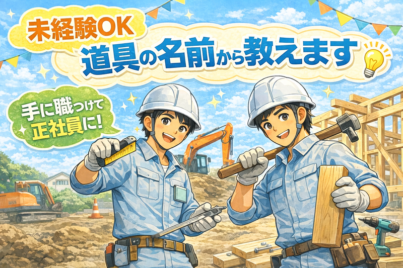 求めている人材 【必須条件】 ✅普通自動車運転免許(AT限定可) 【未経験歓迎】 ✅未経験歓迎 ✅学歴不問 ✅要普通自動車免許 ✅体を動かす仕事が好きな方 ✅建設業・土木・大工に興味がある方 【こんな方と一緒に働きたいです】 ・「現場が好き」「家づくりが好き」という気持ちがある方 ・お客様や職人さんとのコミュニケーションを大切にできる方 ・裁量ある環境で、若いうちからどんどん経験を積みたい方 ・地元で腰を据えて働きたい方