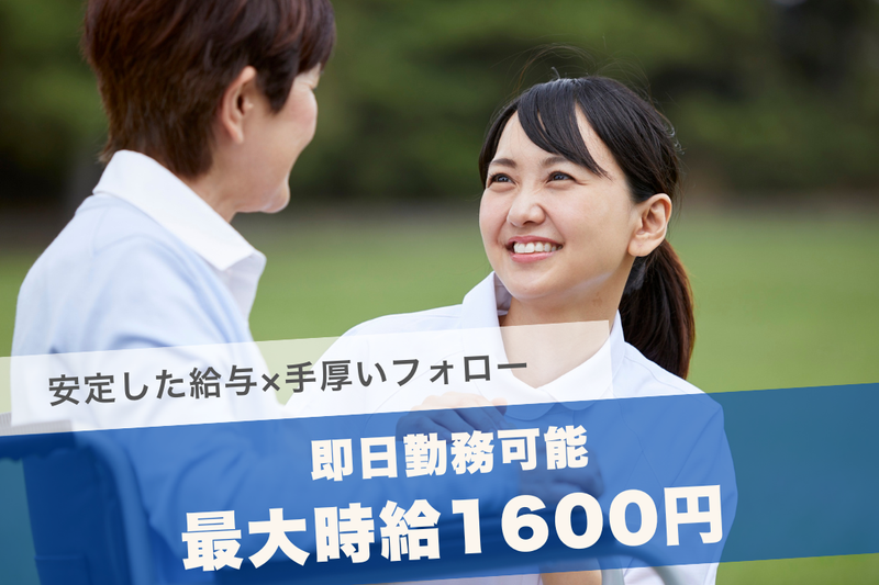 【保険制度】 雇用保険、労災保険、健康保険、厚生年金 福利厚生 ✅ 社会保険完備(初月加入OK) ✅ 資格取得支援制度◎ ✅ 交通費全額支給 ✅ 制服貸与 ✅ 健康診断・予防接種無料 ✅ 安心の研修制度あり ✅ 育休・介護休暇あり ✅ 即日勤務OK! ✅ 履歴書不要 ✅ お仕事スタート後も専属担当がつくので安心! ✅ 万全のアフターフォロー◎ ✅ 担当者とは気軽にLINEでやり取りOK! ✅ 有給は100%金額での支給! ≪お得なキャンペーン実施中!≫ ■時給UPキャンペーン(最大2か月) \初回契約限定/ 介護士さん:時給1,700円 → 1,800円(+100円UP) 看護師さん:時給2,300円 → 2,500円(+200円UP) ※キャンペーン適用条件※ ・エントリー後 3ヶ月以内 にご就業いただいた方 ・有資格かつ実務経験 2年以上 の介護士さん、看護師さん その他、ご就業後も各種キャンペーンもご用意! 詳しくはお気軽にお問い合わせください♪