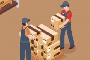 食品工場で紙袋をパレットに仕分け