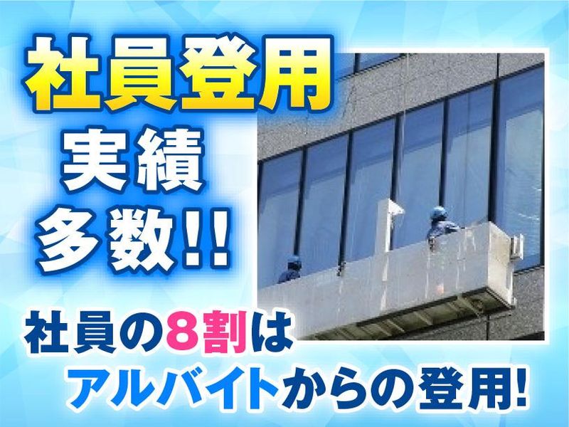仕事内容 <駅チカ現場多数!> 横浜・みなとみらいの 新商業施設など 4~5人でチームを組んで、 ビルの窓を拭くお仕事。 【お仕事内容】 ロープアクセス及びゴンドラ、 どちらもあり。 希望や適性に作業内容を合わせます! ˳༚・✧・༚˳˳༚・✧・༚˳˳༚・✧・༚˳˳༚・✧・༚˳ 【現場の前に丁寧な研修!】 ロープでの作業を学べて、 なかなかできない経験もできます! 使用するのは雑巾などの 一般的なものから、 純水洗浄機などの最新のものまで 取り揃えています! 複雑な大型機械のような 難しいものはありません! 水はけの手間なども軽減できて、 効率よく仕事ができます♪