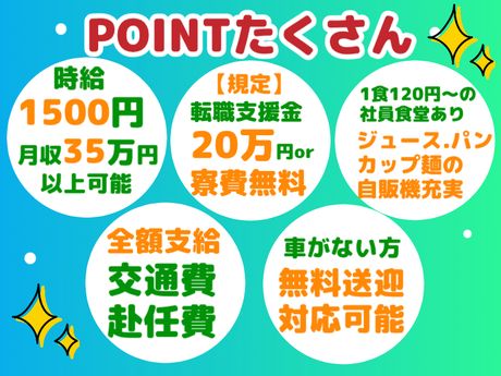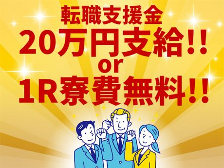 転職支援金20万円or1R寮費無料(規定)赴任費全額支給♪