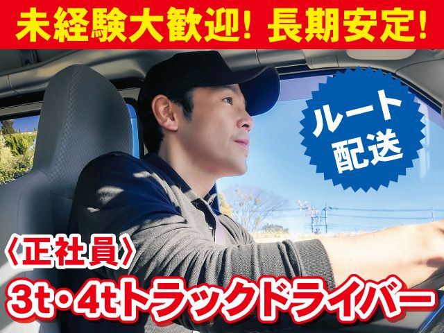<正社員>3t・4tトラックドライバー増員募集! 未経験からのスタートも歓迎!サポート体制充実!