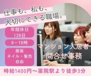 募集背景 住まいに関するサポート業務のニーズ拡大に伴い、 体制強化のため新たなメンバーを募集しています。 動いた分だけ「ありがとう」「本当に助かりました!」 が返ってくるので、毎日のやりがいもたっぷりです。 仕事内容 ★服装・ネイル・髪色自由★ 採用率UP中の今が狙い時! 立ち仕事からデスクワークへ。 未経験からオフィスワークにチャレンジしたい方へ。 ■この仕事のポイント ・時給1400円スタート ・1時間あたり約2件の落ち着いた対応 ・営業要素なし ▼生活に関するお問い合わせ対応のお仕事です。 お客様からの「どうしたらいい?」というご相談に対して、 内容を整理しながら対応していきます。 賃貸マンションにお住まいの方からのお問い合わせについて 一次対応で不安を解消するお仕事です。 ご相談の背景を考えられる、考えようとする方のご応募を待っています 【主な業務】 ・電話/チャット/メール対応 ・内容のヒアリング ・手配、日程調整 ・対応履歴の入力 ▼お仕事の流れ お問い合わせ内容の確認(電話/チャット/メール) ↓ 状況のヒアリング・整理 ↓ 必要に応じて手配 ↓ 完了のご連絡 1件ずつ落ち着いて対応できるため、 「バタバタした仕事が苦手」という方にも向いています。 営業やノルマは一切ありません。 ■職場の雰囲気 未経験からスタートしたスタッフも多く、 分からないことはすぐに聞ける環境です。 事務や接客など、異業種から転職したスタッフも活躍中。 まずはアルバイトから始めて、少しずつ慣れていけます。 「ありがとう」があふれる日常、始めませんか? ⇒提携業者さんの手配などの解決サポートセンター 受電数は1時間あたり約2件です。 営業要素は一切ありません。 お困りごとでご連絡いただく方が多いため、 まずは落ち着いてお話を聞くことが大切です。 話し上手である必要はなく、 丁寧に対応できれば大丈夫です。 ■評価制度があり、日々の取り組みや姿勢も きちんと見てもらえるため、 「頑張っても評価されない」という不安なく働けます! ※履歴の入力は通話終了後に行うことも可能なため、 1件1件丁寧に対応することができます。 マニュアルを見ながらの対応もOK! ■キャリア アルバイトからスタートし、 業務習得後は契約社員(月給制)へ移行可能です。 契約社員登用後も対応業務が中心のため、 急に業務内容が変わることはありません。 慣れた環境で、安心して長く働けます。 [醍醐味] ■仕事のやりがい 入居者様のお困りごとを解決できたときに、 「ありがとう」と直接感謝される仕事です。 ただ受付するだけではなく、 状況を整理し、最適な対応を考えるため、 対応力や判断力など将来にも活かせるスキルが身につきます。 最初は不安でも、 研修やサポート体制が整っているため、 未経験からでも少しずつできることが増えていきます。 [厳しさ] ■仕事の大変なところ お問い合わせ内容は毎回異なるため、 お話を伺いながら状況を整理する力が求められます。 [こんな人が活躍] ■こんな人が活躍しています ・接客や販売から、デスクワークへ働き方を変えたい方 ・人と話すことが好きで、落ち着いて話を聞ける方 ・状況を整理しながら対応することが苦ではない方 ・必要以上に考え込みすぎず、切り替えができる方 ・チームで相談しながら働ける方 【キニナル職場のQ&Aをご紹介!】 Q:職場の人数は? A:15名~20名程度のチームです Q:どんな人が多い? A:接客や販売から転職した方が多く活躍しています Q:雰囲気は? A:落ち着いた環境で、困ったときはすぐ相談できる職場です