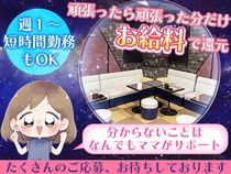 仕事内容 お仕事内容は『お客様にお酒を作る』『楽しくお喋りをする』 この2点だけの簡単なお仕事です♪ 飲食店や居酒屋などとさほど変わらないので皆で楽しくお仕事ができちゃいます お客様と気軽にオシャベリしたり、スタッフみんなで楽しい空間を作りましょう! 「トークが不安…」という子は聞き上手になればOK 店内にはカラオケもあるの楽しく過ごせてで話題には困りません 難しいお仕事は一切ないのでみんなで楽しく接客してただければOK◎ 初めての方にはママのサポートから始めてみてください ナイトワークにありがちな派閥など面倒な人間関係は一切ありません 《ノルマやペナルティー・面倒な営業行為》が無く働きやすい♪ \まずはお店の雰囲気をチェック!!/ 未経験で自信がないという方もまずはお試しで体験入店からお越しください! お店の雰囲気CHECK&納得ができるまで何時間でも体験入店可能です☆ 「曜日固定で働けますか?」「どのくらい稼げますか?」など あなたのご希望やご質問だけのお問い合わせでもけっこうです♪