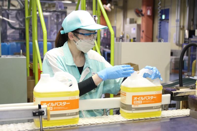 業務用洗剤の充填・包装スタッフ