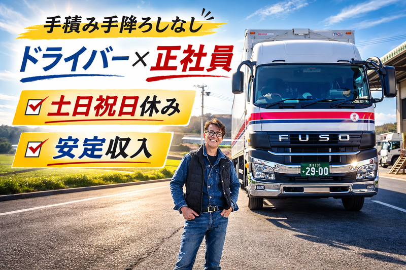 仕事内容: ///////////////////////////////////////// ⭕月給31〜37万円+免許取得支援あり(未経験は先輩同行で育成) ★長く走れて、長く働ける長距離へ。 ★香川→中京の生活用品輸送/創業50年の安定企業。 ★積み込みはパレット中心(フォーク) ★荷下ろしは作業員対応で体の負担が少ない。 ★手積み手降ろしで消耗する働き方とは無縁です。 ★休日は土日祝休み(週休2日)でリズムも整う。 ///////////////////////////////////////// 【会社概要】 1974年の創業以来50年、生活用品を中心に香川→中京地域へお荷物をお届けしています。 荷積みはパレット作業(フォークリフト作業)がメインなので、体への負担が少ない仕事です。 荷積み、荷下ろしも作業員がいるのでドライバーがすることはないです。 ✅運送業というと地味な仕事に見えますが、我々の仕事は生活を豊かにする物を運ぶ仕事、『豊かさを届ける仕事』と言っても過言ではないと思っています。 ⏩《具体的な仕事内容》 長距離(中京方面)トラックドライバーを募集中!(一般貨物) 普段は紙製品などの生活用品をメインに運んでいます。 ⏩《最初の数ヶ月》 最初の数か月は先輩ドライバーと一緒に仕事をしてもらいます。 期間中は、荷物の積み込みから配送までの流れを学びます。 その後独り立ちで運行していただきます。 ⏩運行イメージ 香川を出発 ↓ 中京・へ配送 ↓ 休息を取りながら戻り便 ↓ 帰庫 → 次の運行まで休み 無理な距離設定や急な追加運行はありません。 長距離でも“走ること”に集中できる働き方です。 ⏩1日の流れ ⏰9:00 荷主さんのところへ直行、荷積み ⏰11:00 会社へ帰社、出発 ⏰12:00 昼休憩 運行 ⏰18:00 荷下ろし 遠方の場合トラックにて宿泊