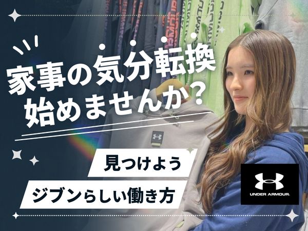 仕事内容 日々挑戦し続けるアスリートたちの力強い味方となるアイテムを、ぜひ私たちと一緒にお届けしませんか?  ̄ ̄ ̄ ̄ ̄ ̄ ̄ ̄ ̄ ̄ ̄ ̄ ̄ ̄ ̄ ̄ ̄ ̄ ̄ ̄ ̄ 我々はエネルギーと情熱のブランド。 アスリートをよりよくする、強くすることに 他の誰よりも徹底してこだわる。 それはアスリートの成功に向けた強烈な意志。  ̄ ̄ ̄ ̄ ̄ ̄ ̄ ̄ ̄ ̄ ̄ ̄ ̄ ̄ ̄ ̄ ̄ ̄ ̄ ̄ ̄ この思いを、全アスリートへお届けすることがUNDER ARMOUR(アンダーアーマー)の最大の使命。ただアイテムを販売しているわけではありません。 アスリートの挑戦を支える高機能なアイテムを、実際に自分たちが着用し、その魅力をお客様にお伝えする接客スタイルも特長のひとつ。製品の技術を肌で感じながら、その価値を直接共有できる仕事です。 / こだわり抜いたアイテムを通じて アスリートの「挑戦」を応援! \ ◇◆ 動きを快適にする「高機能素材」 汗をかいても快適な「吸汗速乾」、体にフィットする「伸縮性」など、アスリートのパフォーマンスを高めるための技術を凝縮。 ◇◆ 季節ごとに最適化されたアイテム 夏は涼しい「ヒートギア」、冬は暖かい「コールドギア」など、季節や環境に合わせたラインアップで、どんな状況でも挑戦をフォロー。 ◇◆ スタイリッシュなデザイン 着やすさを重視した洗練されたデザインも大きな特長。着るだけでアスリートたちの「挑戦する心」を引き立たせます。 - 私たちの言う「アスリート」とは、プロのスポーツ選手だけではありません。 毎朝ジョギングをする方やジムで筋トレに励む方など、体を動かし、目標に向かうすべての人を私たちは「アスリート」と呼んでいます。 そんなアスリートたちの挑戦を、私たちと一緒に全力でサポートしていきましょう!  ̄ ̄ ̄ ̄ ̄ ̄ ̄ ̄ ̄ ̄ ̄ ̄ ̄ ̄ ̄ ̄ ̄ ̄ ̄ ̄ ̄ 【仕事内容】 店舗での「アンダーアーマー」商品の販売・接客業務 【具体的には…】 ・お客様対応 ・品出し ・レジ ・商品管理、商品整理 / ブランドの魅力を伝える アスリートのサポーター役に! \ お客様のスポーツスタイルに合わせて、アンダーアーマーの強いこだわりや魅力を、一緒に広めていきましょう!