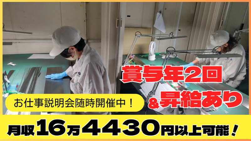 求めている人材 ✅経験不問 ✅学歴不問 ✅資格不問 ✅ブランクOK ▼こんな方にピッタリ! ・新しい場所で新しいスタートを切りたい! ・子育てをしながら、家庭と両立をして働きたい ・育児が落ち着いたから職場復帰したい ・安定した収入の仕事がしたい! ・コツコツ・モクモク作業が好き