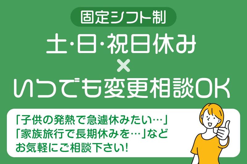 <土日祝休み>シフト融通◎家事・育児とも両立可能!