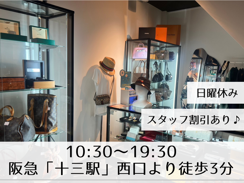 仕事内容 / ブランド品・時計・ジュエリー好き必見✨ ライフスタイルに合わせて無理なく勤務☕ \ :・。*。・:・。*。・:・。*。・:・。*。・:・。*。・:・ ✅未経験歓迎!PC操作ができればOK◎ ✅十三駅から徒歩3分で駅チカ!通勤ラク ✅シフト融通◎週2日、1日2時間~OK♪ ✅日曜固定休み+長期休暇あり☘ ✅昇給&スタッフ割引制度あり♪ :・。*。・:・。*。・:・。*。・:・。*。・:・。*。・:・ _____________ ・✦✨ お仕事内容 ✨✦・  ̄ ̄ ̄ ̄ ̄ ̄ ̄ ̄ ̄ ̄ ̄ ̄ ̄ ̄ ネットショップ運営に関わる作業を お願いします! ⏩商品に関する業務 ◇販売する商品の撮影 ◇Photoshopを使った画像加工 ◇商品説明文の入力 ◇ネットへの出品作業 ⏩販売後の業務 ◇売れた商品の梱包・発送準備 ◇配送手配や発送後のフォロー対応 ★未経験、ブランクがある方も大歓迎◎ 丁寧にお教えしますので 安心して始められます☘ 経験のある方は即戦力として歓迎します! ★ネットショップ運営の一連の流れを 経験できるので、ECスキルを 基礎からしっかり学べる環境です◎ This is a job providing customer service in Japanese. ――――――――――――――――₊⁺༚˚✧ ___________ ・✦✨ POINT ✨✦・  ̄ ̄ ̄ ̄ ̄ ̄ ̄ ̄ ̄ ̄ ̄ ⭐未経験スタート大歓迎! PCの基本操作ができればOK♪ カメラ経験やPhotoshop経験を お持ちの方は、スキルを活かしながら 活躍できます✨ ⭐シフト柔軟!働きやすさバッチリ◎ 週2日~、1日2時間~OK! シフトは柔軟に調整可能です。 「授業の合間に」 「家庭やWワークと両立」など ライフスタイルに合わせて働けます☘ ⭐働きながらスキルアップ! ネットショップ運営に幅広く関われるので 販売の仕組みやECビジネスに 興味がある方にはピッタリの環境です♪ 頑張りはしっかり評価され、実績に応じて 昇給のチャンスもあります! スキルアップと合わせて、 将来の経験にも繋がりますよ◎ ――――――――――――――――₊⁺༚˚✧