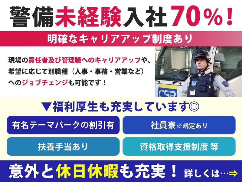 求めている人材 学歴不問★警備未経験OK! 【必須】普通自動車免許(AT限定可) 経験や知識は、入社してから身につければ大丈夫。 今回の募集では、難しい条件よりも 「新しい環境でリラックスして働きたい」という人柄重視の採用です✨ 【求めるタイプ】 ●上場企業で腰を据えて長く働きたい方 ●人と関わることが好きな方 ●車・ドライブが好きな方 ●メリハリをもって仕事をしたい方 ★警察官、ホテル、飲食、アミューズメント、自衛隊、フリーターなど、幅広い業界・業種出身の先輩たちが未経験スタートで活躍しています! 年齢の条件と理由:あり(●18歳以上(警備業法により) ●60歳未満(定年60歳のため))