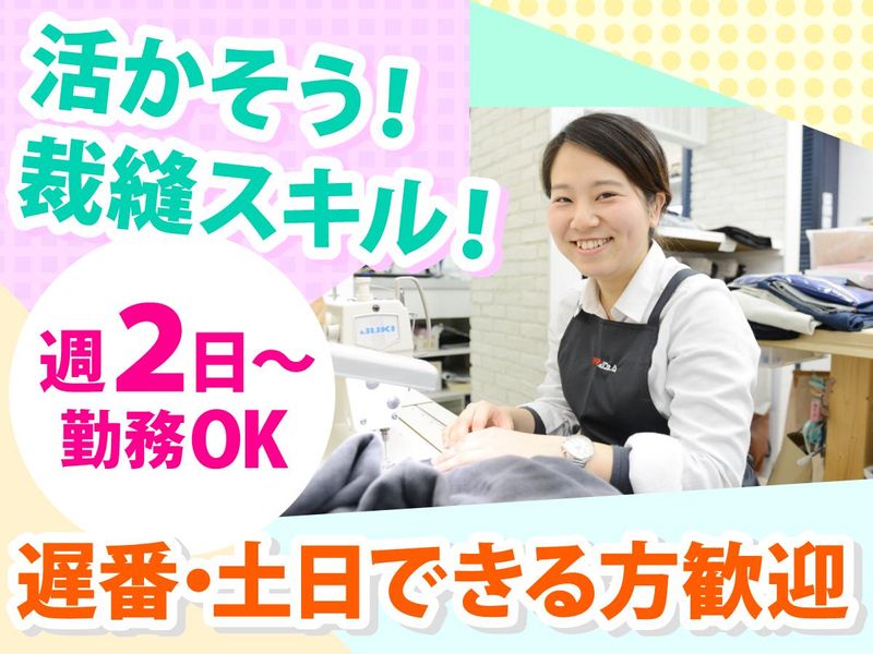 仕事内容 .。.:.。.:.。.:.。..。.:.。.:.。.:.。..。.:.。.:.。.:.。..。.:. 洋服のお直し受付・ミシン縫製スタッフ ★20代・30代・40代・50代の アルバイト・パートの女性・主婦が活躍中! ★「裁縫が好き」を仕事に! ★週3日・1日6h~勤務OK! ★土日祝、ラストまで出来る方歓迎! .。.:.。.:.。.:.。..。.:.。.:.。.:.。..。.:.。.:.。.:.。..。.:. 〓〓〓〓〓〓〓 ◎仕事内容 〓〓〓〓〓〓〓 補正業のパイオニア 株式会社ツヅキ 「ママのリフォーム」にて、 洋服のお直し受付・ミシン縫製をお任せします! お客様の大切なお洋服をもっと 長く着て頂けるためのお手伝いです。 <具体的には> ◆ 受付対応(接客) ・お客様のご要望や補正箇所の確認 ・お直し内容のご提案・費用のお伝え ・仕上がり日のご案内、受付業務 ◆ 洋服のお直し(ミシン作業) ・丈詰めやサイズ調整、すそ上げなど ・ミシン・ロックミシンを使用して縫製 ・検品・仕上げ・プレス作業 など 未経験の方は、パンツのスソ上げや 商品の検品・仕上げ・お渡しからスタート! 〓〓〓〓〓〓〓〓〓〓〓 ◎仕事紹介/裾上げ編 〓〓〓〓〓〓〓〓〓〓〓 ・お客様からお預かり、作業開始。 ▼ ・まずは希望サイズに採寸、マーキング ▼ ・裁断して余り生地で裾に靴擦れを作成 ▼ ・ロックミシンで裾を固定 ▼ ・すくいミシンでまつり縫い ▼ ・アイロンでプレス、サイズを確認 …以上の手順は慣れれば約10分で完了です! 〓〓〓〓〓〓〓〓〓〓〓〓 ◎こんな方にピッタリ! 〓〓〓〓〓〓〓〓〓〓〓〓 **「裁縫が好き」を仕事にしたいあなたへ** 「ボタン付けくらいしかやったことがない…」 そんな方でも大丈夫です! おしゃれや洋服が好きな気持ちを 仕事に変えてみませんか? 家事スキルを活かして、 自分らしく働けるお仕事です! **子育てがひと段落したあなたへ** 「もう一度社会と関わりたい」 「自分の時間を有効に使いたい」 そんな思いを応援します! 家での裁縫経験や、 丁寧な対応力が活かせるお仕事です。 これまでの人生経験が、 そのまま接客力になります! 〓〓〓〓〓〓〓〓〓〓〓〓 ◎裁縫が好き!! 〓〓〓〓〓〓〓〓〓〓〓〓 \その気持ちが一番の応募資格!/ 未経験からでもプロの技術を 丁寧にお教えします。 スキルアップを目指したい方、 手芸・洋裁が趣味の方も、 お仕事で活かしませんか? お気軽にご応募ください♪