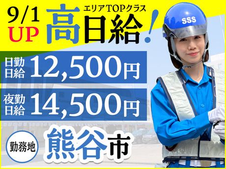 埼玉県熊谷市で採用強化中!車・バイクお持ちの方大歓迎◎\今年も日給アップしました♪NO.1の警備の提供・サービスの提供を目指しています◎/