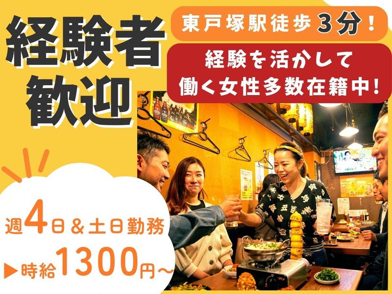 仕事内容 人気もつ焼き店のホールスタッフ募集✨ <具体的には…> ✅ホール ●料理・ドリンク提供 ┗持てる物を持てるだけでOK ●ドリンク作成 ┗レシピがあるので簡単! ●テーブルの片付け ●お会計 *営業状況によっては、 キッチン業務補助をお願いする 場合もございます! ──────────────────── <<勤務日数によって時給変動アリ>> ✨経験者大歓迎!女性スタッフ活躍中! ①土日勤務&週4日勤務の方 ▶時給1300円スタート! ②土日勤務&週3日勤務の方 ▶時給1250円スタート! ──────────────────── ✨飲食店経験者大歓迎です!! 経験者時給優遇します!! ジャンルは問いません!! また、接客好きな方も大歓迎◎ 【店内の雰囲気は…】 「人と人が交わる場に…」そんな思いで、 明るく元気なスタッフが働いています! 作業は忙しい時もありますが、 みんなで声を掛け合っている、 明るくメリハリのある職場です◎ フランクな常連さんも多い立ち飲み店で 仲間と賑やかに働いてみませんか?✨