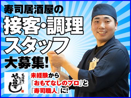 仕事内容 未経験から寿司職人へ。エリア外転勤なし!年数回の昇格・昇給も可能! ー・ー・ー・ー・ー・ー・ー <お仕事内容> 寿司居酒屋「や台ずし」の 店舗スタッフのお仕事! ●接客や料理の配膳などのサービス業務 ●寿司のにぎりや一品料理の調理 お寿司を握ったことがなくても 飲食店で調理業務の経験のある方は、 最短2~3ヶ月でお寿司を 提供できるようになりますよ♪ ー・ー・ー・ー・ー・ー・ー <自己申請昇格制度あり> 年数回の昇格・昇給も可能! 2年目で店長になった方も! 【キャリアアップ例】 店舗スタッフ ↓ 店長 ↓ チームリーダー ↓ エリアマネージャー ↓ 部長 ー・ー・ー・ー・ー・ー・ー <未経験も安心スタート!> 「飲食業界に興味があるけど経験がない…」 「新しいことにチャレンジしてみたい」 そんなあなたも大歓迎! 先輩スタッフの丁寧な指導と 動画マニュアル完備で 未経験も安心して勤務開始できますよ♪ ー・ー・ー・ー・ー・ー・ー <や台ずし社員のスケジュール> ※実働8時間のシフト制 営業時間15:00~翌2:00 の場合 15:00~ 出勤!今日も1日頑張りましょう! 15:00~16:00 オープン前準備 16:00~23:00 接客・調理 (※途中休憩1時間あり) 23:00~ 退勤!お疲れ様でした☆ミ ー・ー・ー・ー・ー・ー・ー <や台ずしについて> 未経験から短期間で寿司職人を目指せる! 「や台ずし」は、本格職人が 一貫一貫丁寧に握る寿司居酒屋です。 寿司以外にも、旬の素材の一品料理や 揚げ物などの居酒屋メニューが多いのも魅力。 客層は会社帰りの団体から女性グループ、 子連れのファミリーまで幅広いです。 ★職場の雰囲気もわかるInstagram運用中!★ 【や台ずし公式 Instagram】 https://www.instagram.com/yataizushi_official/ ー・ー・ー・ー・ー・ー・ー