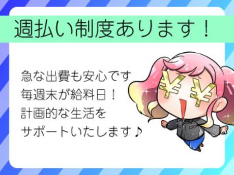 時給2,100円~2,625円 給与 時給 2100円~2625円 2026.1~3月末まで時給UPキャンペーン中です! 4月からは時給1900円~2375円 +皆勤手当3万円 忙しい今は残業があってめちゃくちゃ稼げます!! 50万円以上稼ぐのも夢じゃない!! 迷ってるなら一度応募しなきゃ損♪♪ 交通費:通勤交通費全額支給 【給与例】 給与例 【時給】 2100円 残業時と深夜帯2625円(残業手当1.25倍) 【月収例】 \50万円以上可能/ ※ 時給2100円×7.75h×勤務日数 +残業・深夜・休出・通勤手当 【各種手当】 ■ 残業手当 ■ 深夜手当 ■ 休出手当 ■ 交通費規定支給 ■ 昼食補助金:毎月3,500円支給 ※ 各規定あり