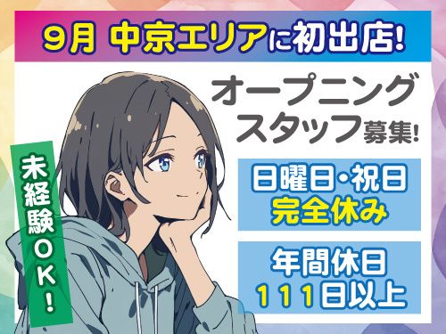 仕事内容 中京エリア初出店! メンズ専門フィットネスクラブが9月グランドオープン予定! 未経験からスタートできるインストラクターのオープニングスタッフ募集! 即日入社可能! 9月オープンに向けてお店作りから一緒にスタートしませんか! 今回は立ち上げメンバーの募集です! フィットネス業界の経験や運動神経は一切問いません! 充実した研修制度があるため、 既存店舗では異業種から転職した20代から40代のスタッフも多数活躍しています。 新しいお店を一緒に盛り上げてくれる仲間をお待ちしています。 全国に店舗を展開し、 “30分フィットネス”という新しい運動習慣を広めてきたフィットネスクラブ。 そのノウハウと成功モデルを活かし、 男性向けフィットネスクラブ「メンズ・カーブス」が中京エリアに初出店します! 今回は新店舗を一緒に作っていくオープニングメンバーの募集。 新しい環境で、インストラクターのお仕事にチャレンジしてみませんか? 「フィットネスクラブでの勤務経験がない」「インストラクターは初めて」そんな方もOK! \オススメポイント/ 〇日曜日・祝日は完全休み!年間休日111日以上! プライベートの時間もしっかり確保できます! 旅行や趣味など、自分の時間も大切にしながら働けます。 〇育児休業も取得しやすい環境! ライフスタイルの変化にも柔軟に対応。 長く安心して働ける環境を整えています。 〇未経験・無資格からスタート可能! 充実した研修制度と手厚いサポート体制があるため、 異業種からの転職でも安心してスタートできます。 〇社員割引制度あり! プロテインなどの商品を社割価格で購入できます! 〇健康を意識しながら働ける! お客様の健康をサポートしながら、自分自身も健康的に働ける環境です! 「お仕事内容」 会員様の健康づくりをサポートしていただくお仕事です! 〇お客様受付 〇お客様の運動・ストレッチのサポート 〇他、付随する業務 具体的には、 〇お客様のご案内 受付、電話応対、接客業務 〇POP製作 キャンペーン・イベント告知POPの作成 〇サポート業務 機械の使い方をサポート、食事のアドバイスなど \カーブスの特徴/ 1回30分のサーキットトレーニングなので、 本格的なトレーナーのような専門指導や 激しい運動指導はありません。 会員様との会話やコミュニケーションを大切にしながら、 楽しく健康づくりをサポートするお仕事です。 そのため、採用は人柄重視! マシンの使い方やカウンセリング方法などの専門知識は、 研修でイチから学べるので心配はいりません。 接客未経験の方も大歓迎! ジムやフィットネスでの勤務経験がない方でも、 「人と話すことが好き」「健康に関わる仕事に興味がある」 そんな気持ちがあれば、安心してスタートできます!