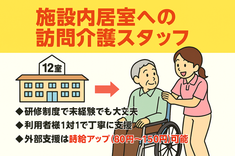 求めている人材 ✅経験不問 丁寧にサポートします!! ご安心ください♪ ✅学生さん歓迎 ✅主婦(夫)さん歓迎 ✅WワークOK ✅シニアの方・高校生も応援 ✅10代~60代まで活躍中 ⭐初任者研修資格 (旧ヘルパー2級)優遇 ※資格をお持ちでない方は費用会社負担で取得できます。 >土日勤務できる方歓迎<