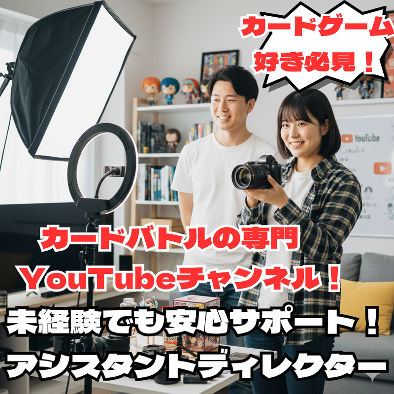 タイトル アニメ・ゲーム好き大歓迎!好きを仕事に!カードゲームの専門YouTubeチャンネルのお仕事です! 職種 番組制作 アニメ・ゲーム好き大歓迎!好きを仕事に!カードゲームの専門YouTubeチャンネルのお仕事です! 雇用形態 派遣社員 仕事内容 ◇◆ ◇◆ ◇◆ ◇◆ ◇◆ ◇◆ ◇◆ ◇◆ カードゲームの専門 YouTubeチャンネルのアシスタントディレクター ◇◆ ◇◆ ◇◆ ◇◆ ◇◆ ◇◆ ◇◆ ◇◆ カードバトルの専門YouTubeチャンネルにて サポート業務をしていただきます。 ワンピース・デジモン・ポケモンカード 日頃からカードバトルを楽しんでいる方必見!! ご自身の知識がお仕事に活かせます! 好きを仕事に!!ぜひお気軽にご応募下さい♪ <業務内容> ・カードゲームの進行台本制作 ・演者楽屋などの準備(お弁当発注や楽屋のセッティング作業) ・撮影現場でのサポート(機材準備・撮影補助など) ・撮影許諾などの申請作業 ・撮影時に使用する買い出し作業(小道具など) ・動画編集のサポート <選考の流れ> 面接時に日常的なカードゲームをお聞きし、 選考後、スキルに伴い専門チャンネルを ご提案させていただきます。 募集の背景 スタッフ欠員により募集 ※2026年3月卒業予定の新卒採用エントリーは弊社HPの『新卒採用』より内容をご確認お願いいたします。